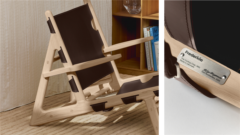 I anledning af 75-årsjubilæet lancerer Fredericia Furniture nu en særlig udgave – kun 75 eksemplarer, hver enkelt håndlavet i Danmark i FSC-certificeret ask med mørkebrunt læder, kromspænder og diskret jubilæumsplade med signatur og certifikat.