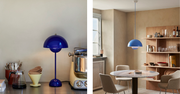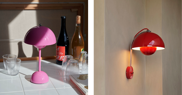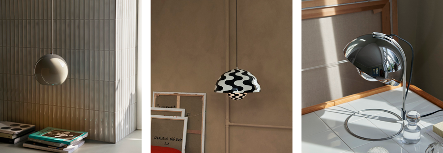 I tæt samarbejde med Panton-familien, bydes der nu velkommen til 5 nye skønne farver til Flowerpot-serien. Samtidig relanceres også en vaskeægte Panton original – VP2 og VP7 med sort/hvidt bølget mønster fra 1970’erne. Ligeledes relanceres Topan (VP6) i 3 nye farver - Vermillion Red, Grey Beige og en reflekterende Chrome.