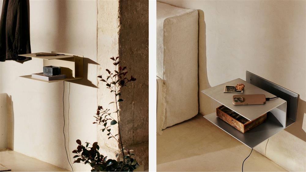 Bordet er designet til vægmontering og har et integreret kabelsystem, hvilket gør det ideelt til moderne indretninger, hvor enkelhed og praktiske løsninger går hånd i hånd. Med sin kompakte størrelse passer det perfekt ved sengen eller som sidebord i stuen.