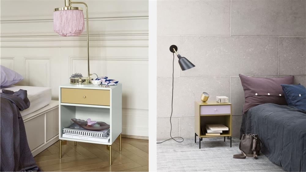 For dem, der søger et mere funktionelt og alsidigt sengebord, tilbyder Montana Selection Drift en smart og dekorativ opbevaringsløsning. Dette lille skuffebord med ben er ideelt til dem, der har brug for mere opbevaringsplads uden at gå på kompromis med stil. Med en praktisk skuffe og en solid top kan du opbevare alt fra bøger til elektronik og have en lampe eller kop kaffe lige ved hånden.