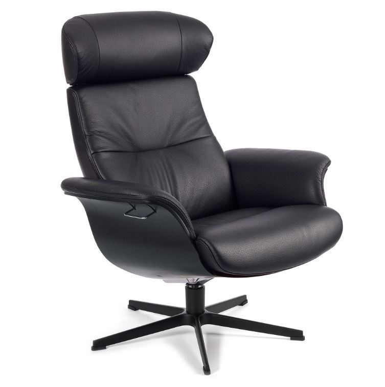 Smuk klassisk lænestol fra Conform. Lænestolen Timeout er en yderst behagelig og komfortabel lænestol der giver dig den bedste siddekomfort med 3-trins justerbar ryg og nakkestøtte. Stolen er fuldpolstret og betrukket med sort kvalitets læder, har en skal af sortbejdset egetræ og en 4-bens drejefod i sort aluminium. Der medfølger en skammel til denne stol i samme kvalitet og materiale. Den justerbare nakkestøtte og skammel gør det muligt at ligge/sidde behageligt og samtidig støtte nakken, så du kan se tv'et i en afslappet position. Timeout stolen gør det muligt, nemt at ændre stilling, så du kan nuppe et kapitel mere i din yndlingsbog i ny stilling - eller forlænge luren på bedste vis.