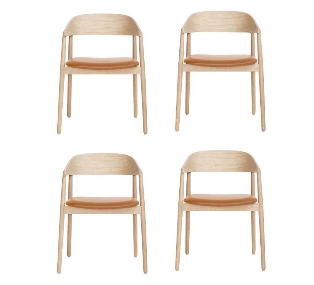 Andersen Furniture AC2 Stol Sæt af 4 stk - Eg Hvidpigmenteret Lak/Cognac Læder