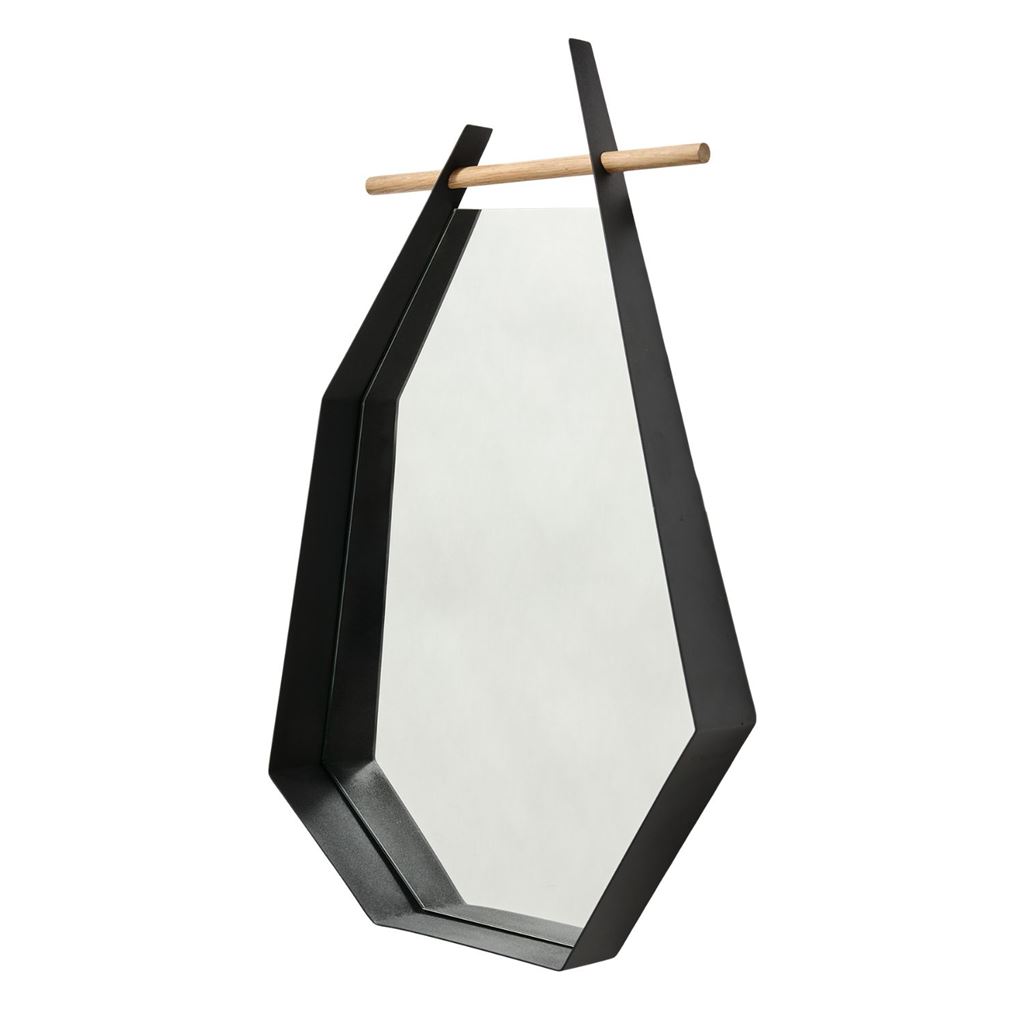 Edge spejlet udfordrer de klassiske, bløde skandinaviske former med sit stringente, geometriske design. Fremstillet i pulverlakeret metal med præcise linjer og kantede detaljer, kombineret med en enkel stav i egetræ, fremstår spejlet som et moderne og karakterfuldt element i indretningen.