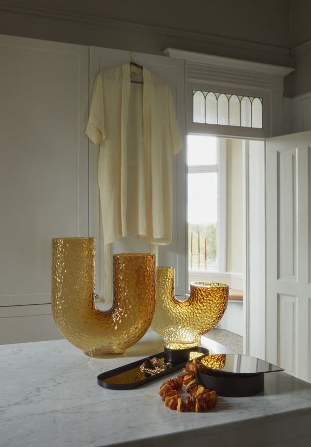 AYTM Arura Vase H: 26 cm - AmberArura-vaserne er hver især helt unikke, da de er lavet af mundblæst glas. Vaserne har et meget dynamisk og levende look med der Se mere ...