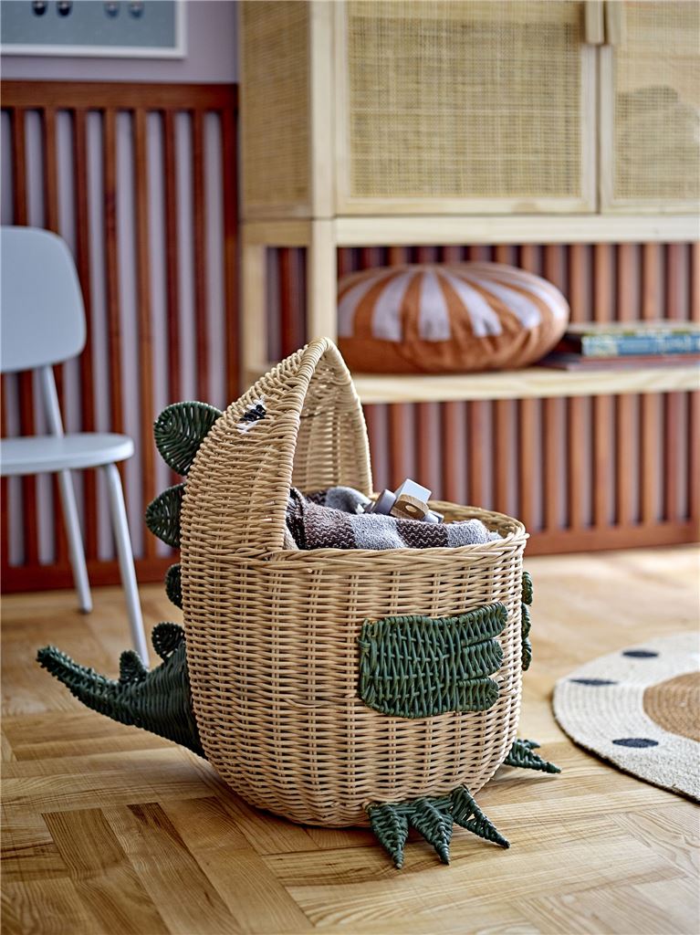 Eddi kurven fra Bloomingville Mini er en sød og praktisk opbevaringskurv. Kurven er lavet i flettet rattan med en dinosaur som figur, lang hale bagpå og søde små detaljer foran. Den flotte kurv er perfekt til opbevaring af alle de børneting der kan ligge i stuen eller på børneværelset.