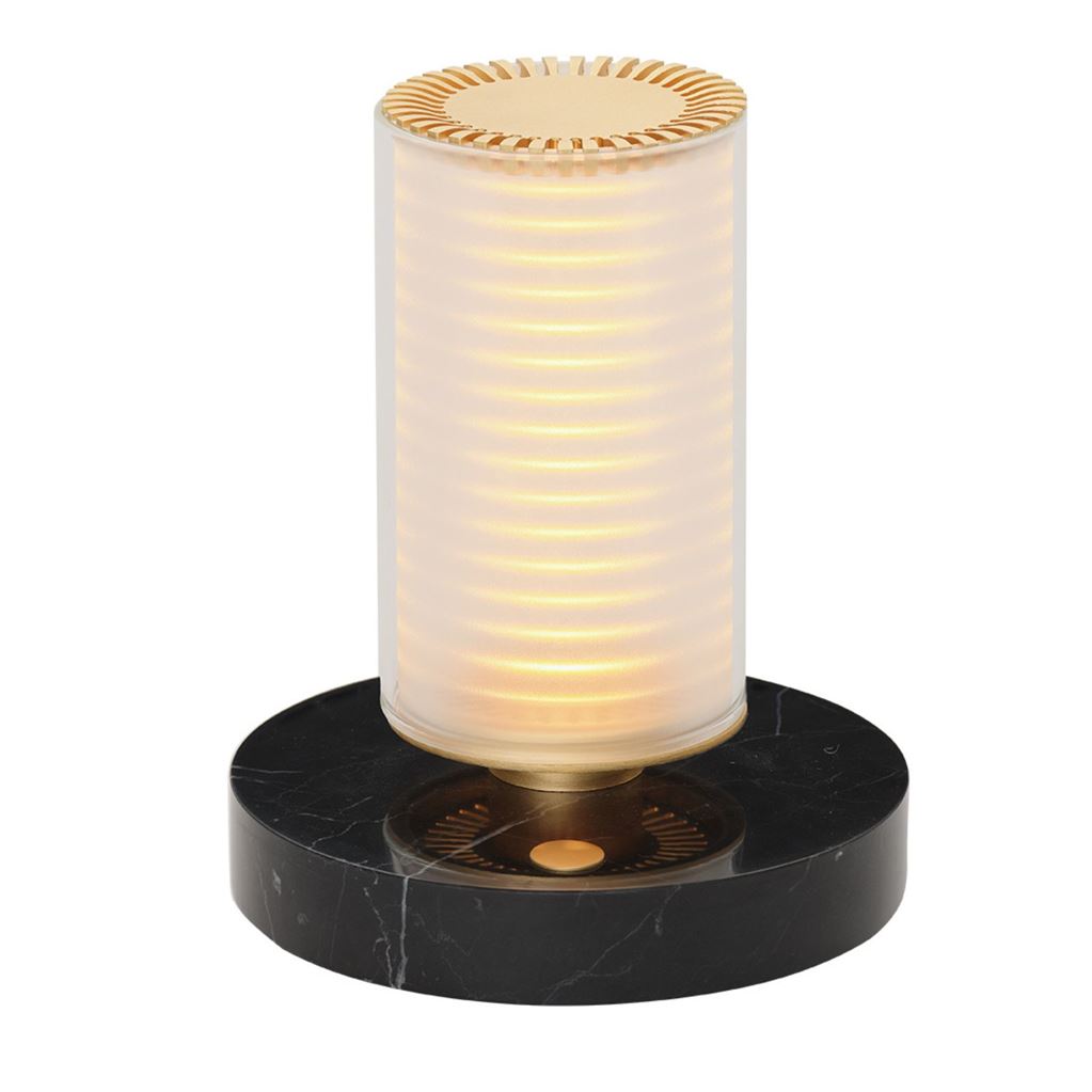 Trådløs lampe. Består af en base i marmor og aluminium samt et rør i borosilikatglas. Ved at forene tidløse materialer og en poetisk tilgang til teknologi spreder den ikke blot lys, men også stemning i rummet.