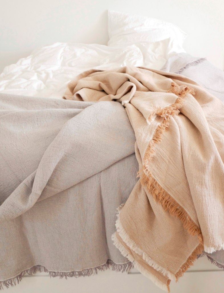 Daisy Sengetæppet fra Elvang er i afdæmpet farver, som giver en hyggelig og mildt stemning i soveværelset. Sengetæppet har en naturlig blødhed og et æstetisk udtryk. Som en ekstra fin detalje er der i hver ende korte frynser i to forskellige farver på hver side.