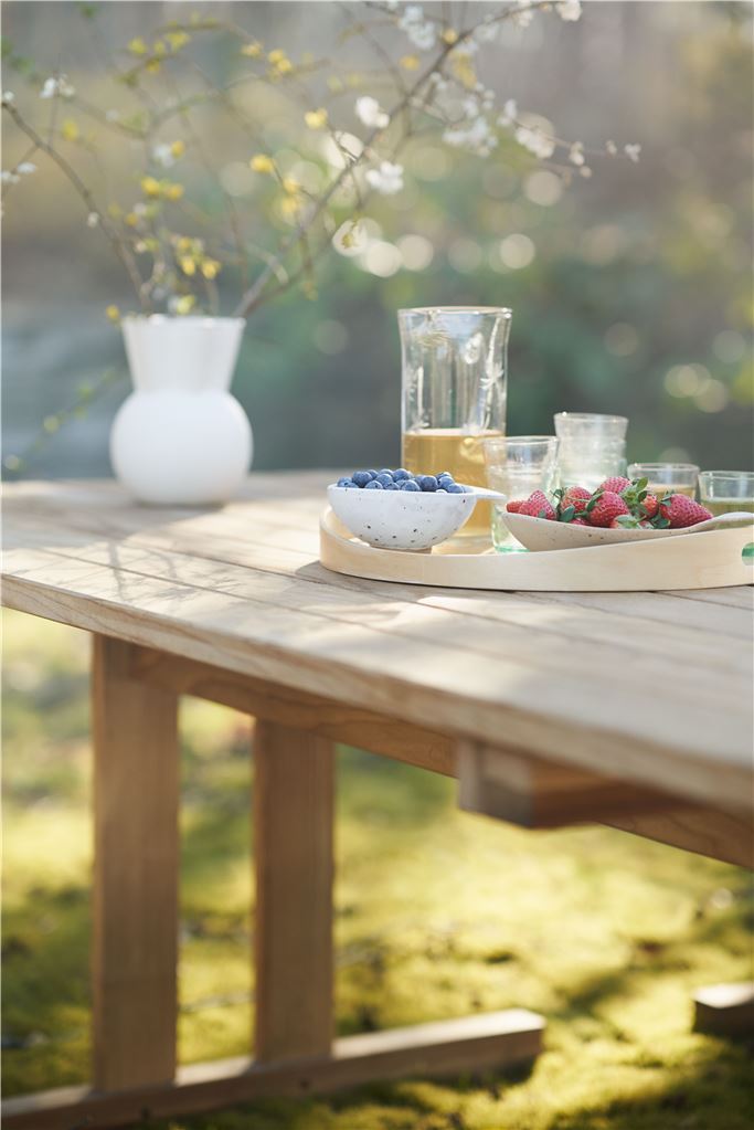 Som alle andre træmøbler, der bliver udsat for vind og vejr, forlænger du levetiden, når du vedligeholder dem. Ved normal brug af havemøbler, der ikke står ude om vinteren, anbefaler vi oliering 1-2 gange om året