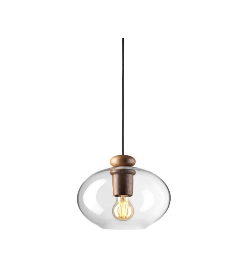 FDB Møbler U2 Hiti Pendel m. Sort Ledning Ø: 26 cm - Valnød/Klar Glas