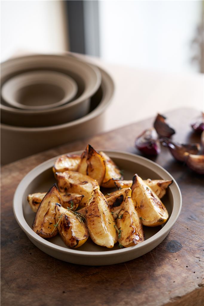 Smuk skål fra FDB Møbler, designet af Grethe Meyer. I 1970'erne var stentøjsserien Ildpot et nybrud inden for dansk husholdning. Dette var perioden hvor kvinderne kom ud på arbejdsmarkedet, hvilket medførte til nye krav til servering og ikke mindst madlavning. Ildpots egenskaber gjorde det muligt at servere aftensmaden hurtigt, nemt og enkelt. Ildpotten kunne tages direkte ud af fryseren, ind i ovnen for til sidst at blive serveret på middagsbordet. Nu har FDB Møbler relanceret en ikonisk stentøjsserie, tegnet af Grethe Meyer. Skålen er fremstillet i uglaseret cordierit som er velegnet til store temperaturforskellen og som på samme tid bidrager med et råt og unikt udtryk. Ud over de fantastiske egenskaber er Ildpot også miljøvenligt, da der ikke er behov for at bruge engangsbakker af folie og aluminium.