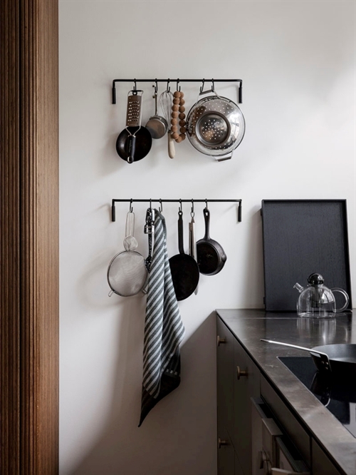 Enkel og smuk opbevaringsløsning til dine køkkenredskaber og tekstiler. Der medfølger seks kroge, som du kan bruge til at skabe mere plads..