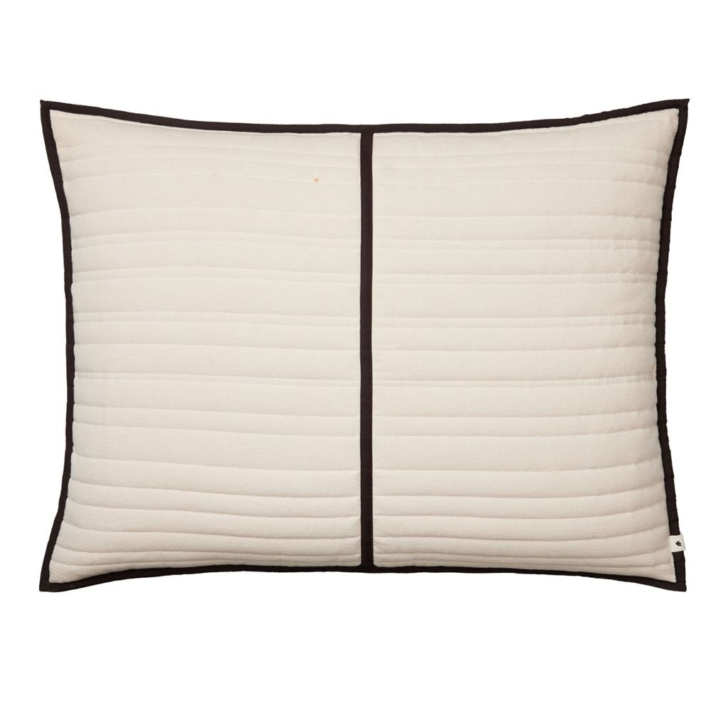 Vari Quiltet Pude bringer et moderne og struktureret udtryk ind i indretningen og er syet i økologisk bomuld med en let vasket overflade. Det ufarvede stof er kombineret med piping i en dyb chokoladebrun nuance, som skaber en fin kontrast og tilføjer subtil dybde til det enkle design. Den generøse polstring giver en blød og komfortabel fornemmelse, der fuldender pudens taktile karakter.