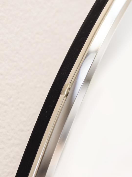 Bemærk: spejlets messingfarvet metalramme har to svejsemærker på de punkter, hvor metallet er smeltet sammen.