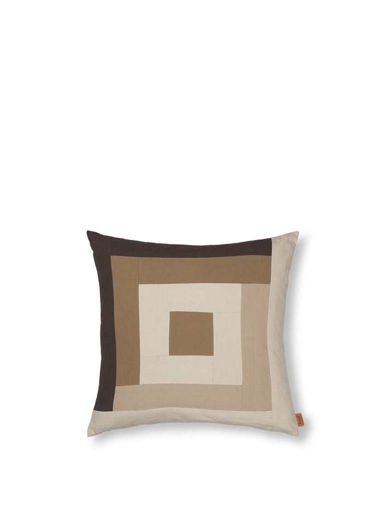 Ferm Living Border Patchwork Cushion Cover 50x50 cm - Coffee/Dark Sand