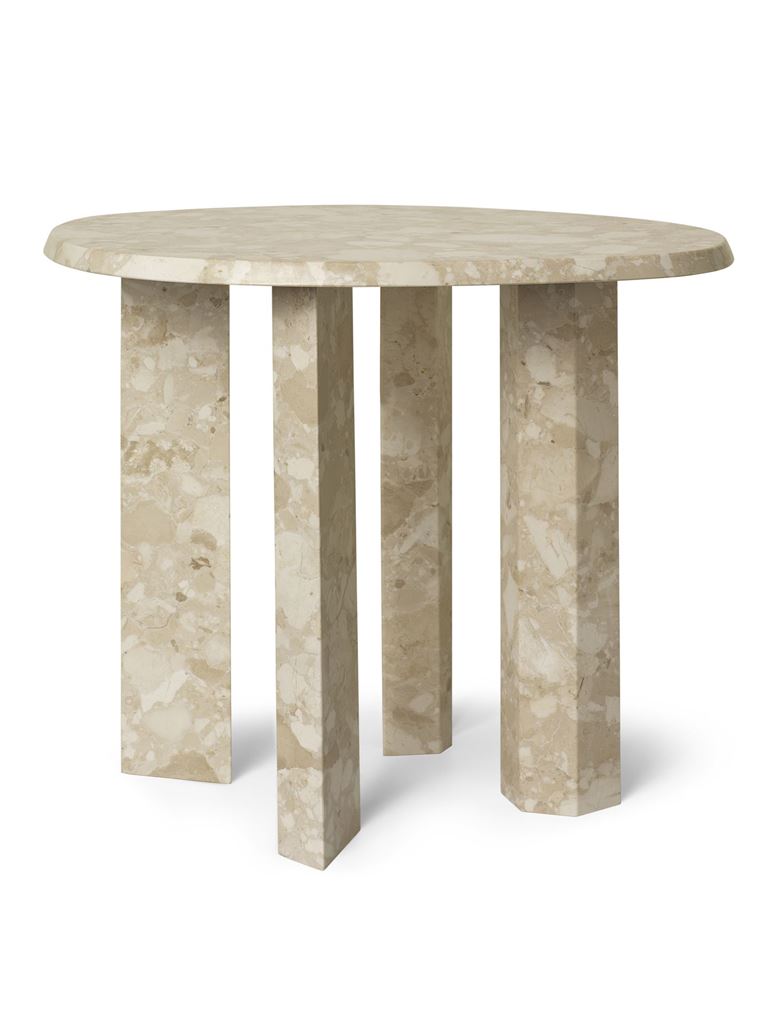 Taula Side Table er inspireret af de ikoniske megalitter fra De Baleariske Øer. Stenen bringer tidløse skønhed ind i hjemmet. Bordets bløde, organiske form står i kontrast til de skarpe, skrå kanter, og det hviler på fire brede, lineære ben. Serien består af to størrelser og kan kombineres med hinanden.