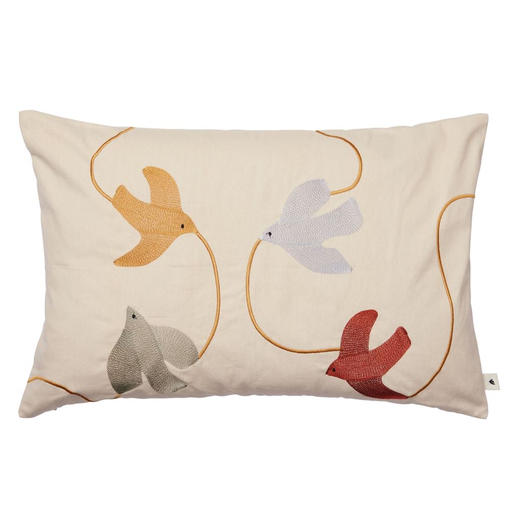 Ferm Living Swif Embroidered Cushion Rectangular 60x40 cm - Økologisk Bomuld/Mult