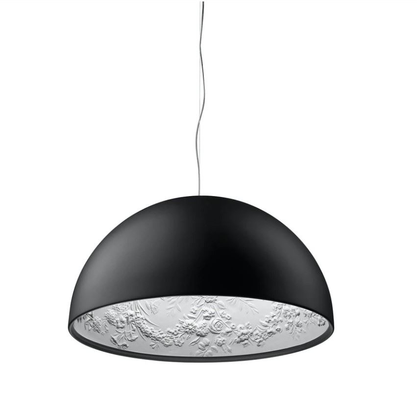 Smuk og enkel pendel fra FLOS, designet af Marcel Wanders i 2007. Marcel Wanders design kendetegnes ved traditionelle design med et præg af modernisme. Skygarden pendlen er inspireret af lofterne i designerens tidligere hus, som nu er en del af designet i de fine Skygarden pendler. Pendlen forbinder det traditionelle med moderne, hvilket gives til udtryk ved lampens yderside som af pulverlakeret rustfrit stål og som udstråler simplicitet. Det er først når man sætter sig til rette ved bordet eller på anden vis har mulighed for at se lampen nedefra, at man kan se det smukke og romantiske landskab, som gør pendlen yderst unik.