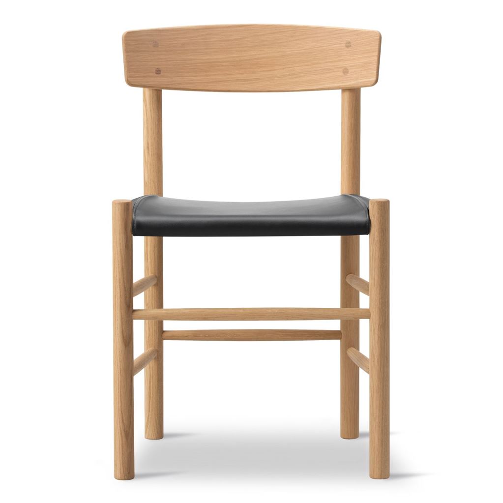 Fredericia Furniture 3339 J39 Mogensen Spisebordsstol - Olieret Eg/Sort Læder