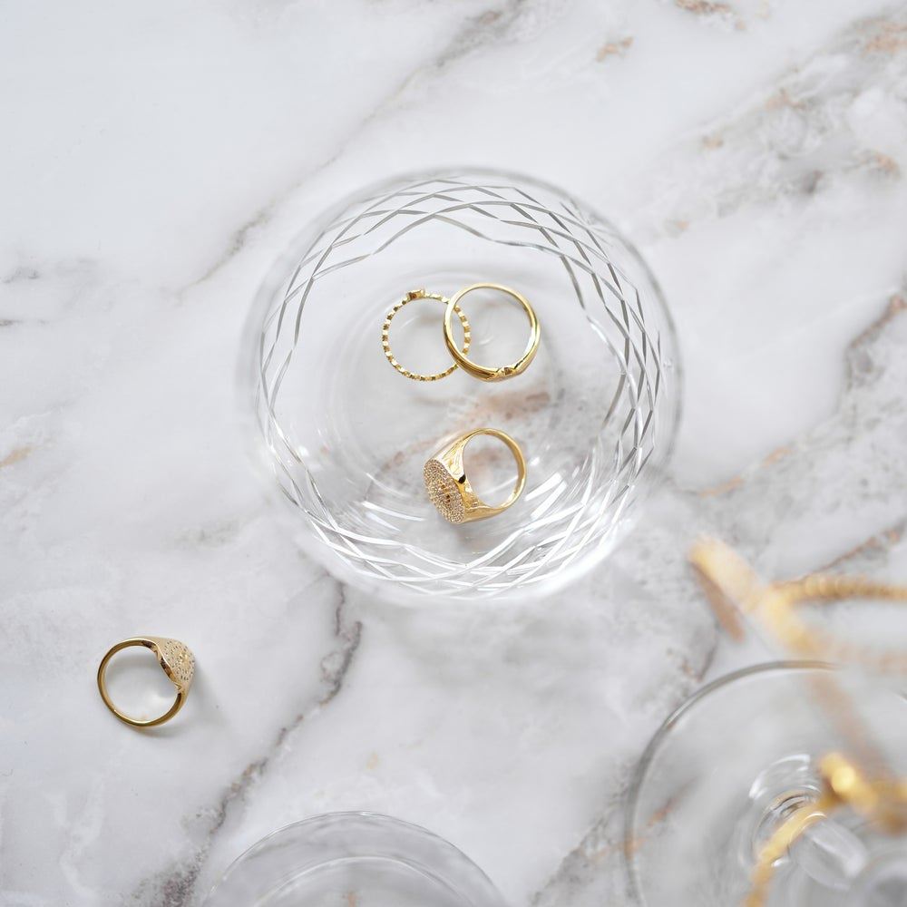 Skålen er diamantslebet i krystalglas. Den tåler opvaskemaskine ved glasprogram og temperaturer fra -25 grader op til 180 grader.