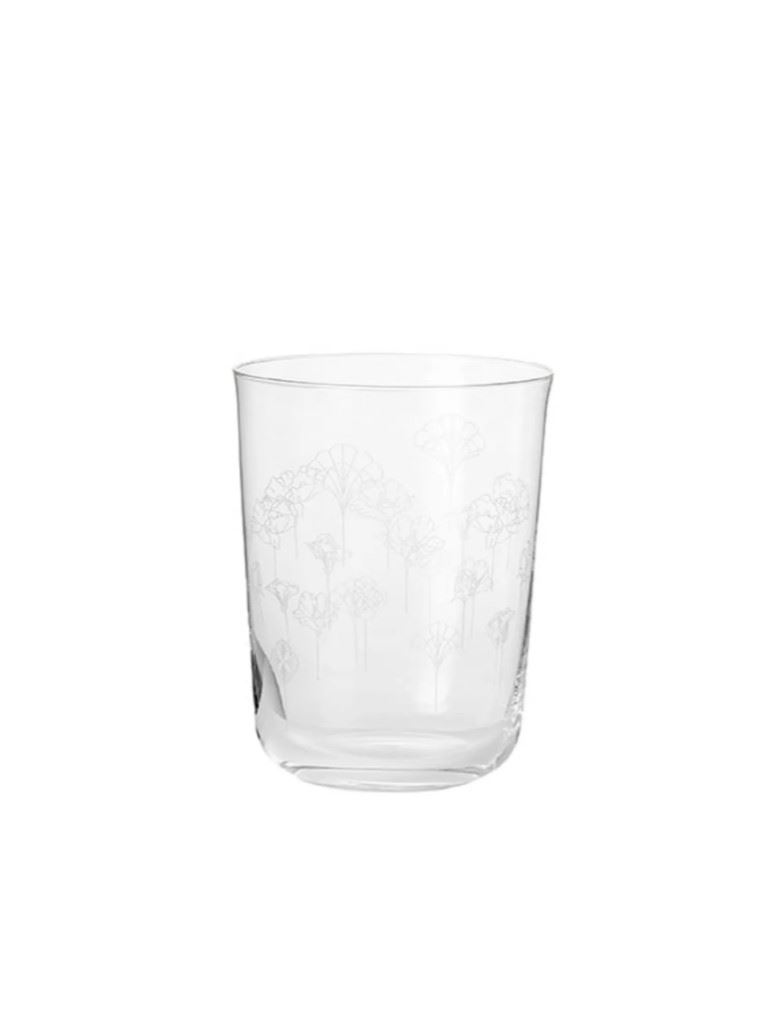 Flower-serien inkluderer også vandglas med et klassisk, cylinderformet design. Blomster dekorationen på glasset giver et festligt og anderledes udtryk til borddækningen og giver et vandglas lidt ekstra charme. Glassene kan nemt stables i køkkenskabet, hvilket gør det yderst praktisk at opbevare.