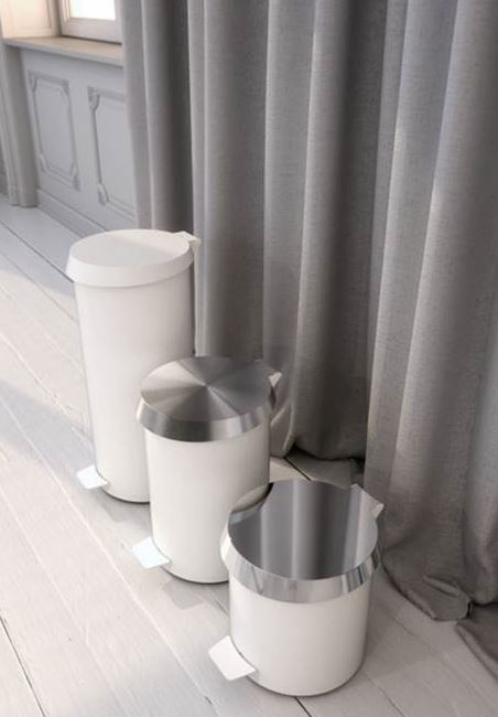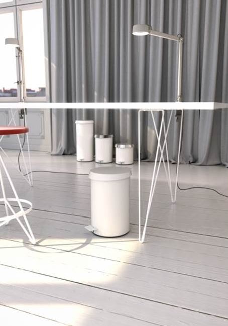 Pedalspand 350 fra Frost. Pedalspanden har et minimalistisk udseende samt et tidløst og robust design, hvilket gør spanden til en æstetisk oplevelse. Det danske, moderne og elegante udseende passer ind i mange forskellige indretninger, ikke kun i det private men også i det offentlige. Den tilføjer personlighed der hvor den står, om det er på badeværelset, køkkenet eller på kontoret. Pedalspanden fra frost er nem at betjene, træd på pedalen og den åbner, og du slipper for at røre ved den. Pedalspanden er designet af Bønnelycke MDD og har i 2018 vundet Good Design Award, Reddot og IF Design Award og i 2019 fik den tildelt en German Design Award special. Pedalspand 550 Large har en volumen på 15 liter, og passende poser kan tilkøbes.