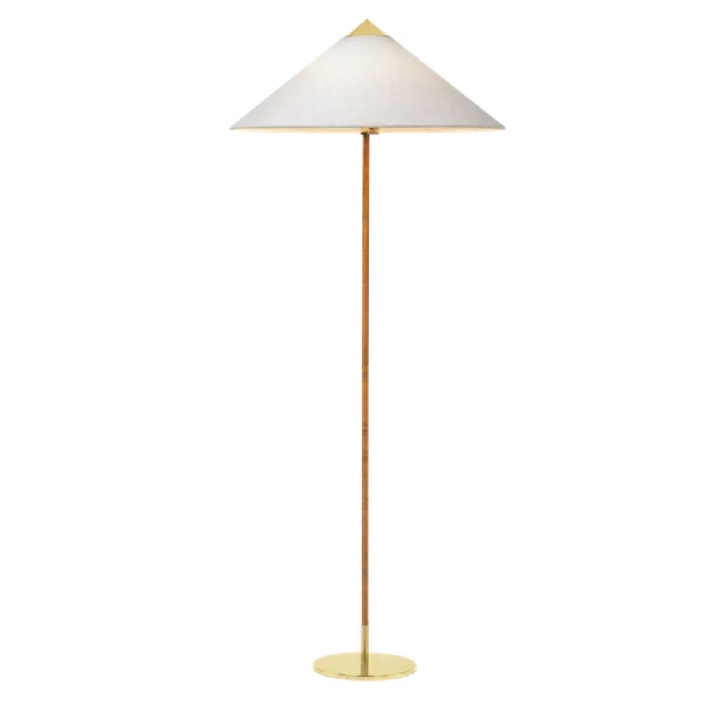 GUBI Base for Paavo Tynell 9602 Floor Lamp H: 153,5 cm - BrassMed sin lette og elegante lampeskærm samt den smukt rattanbeklædte stander demonstrerer 9602-lamp Se mere ...