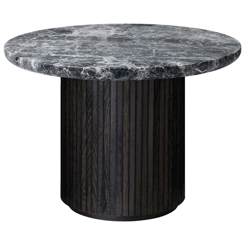 GUBI Moon Coffee Table Ø: 60 cm - Brun/Sortbejdset Egetræsfiner/Grå Marmor