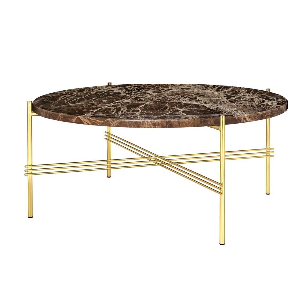 GUBI TS Coffee Table Ø: 80 cm - Brass Base / Brown Emperador Marble