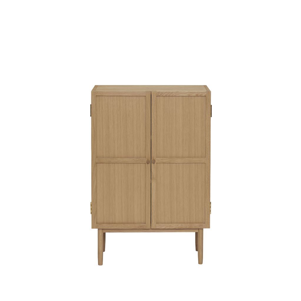 Smukt skab i egetræ fra Hübsch. Med sine varme trætoner vil skabet passe i ethvert hjem og kunne sammensættes med lige de farver hjertet begærer. Med sit klassiske, minimalistiske udtryk er skabet et sikkert valg og vil være et hit mange år frem.