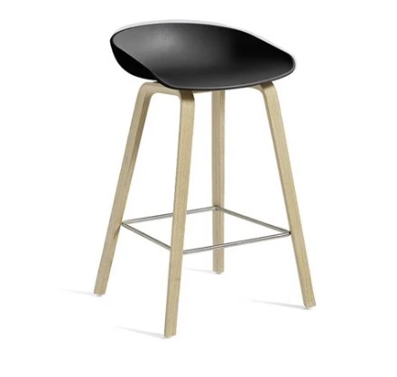 HAY AAS32 Bar Chair Low - Lacquered Oak Veneer / Black / Footrest Stainless Steel Skøn barstol fra HAY, designet af Hee Welling. Stolen er smuk og enkel i si Se mere ...