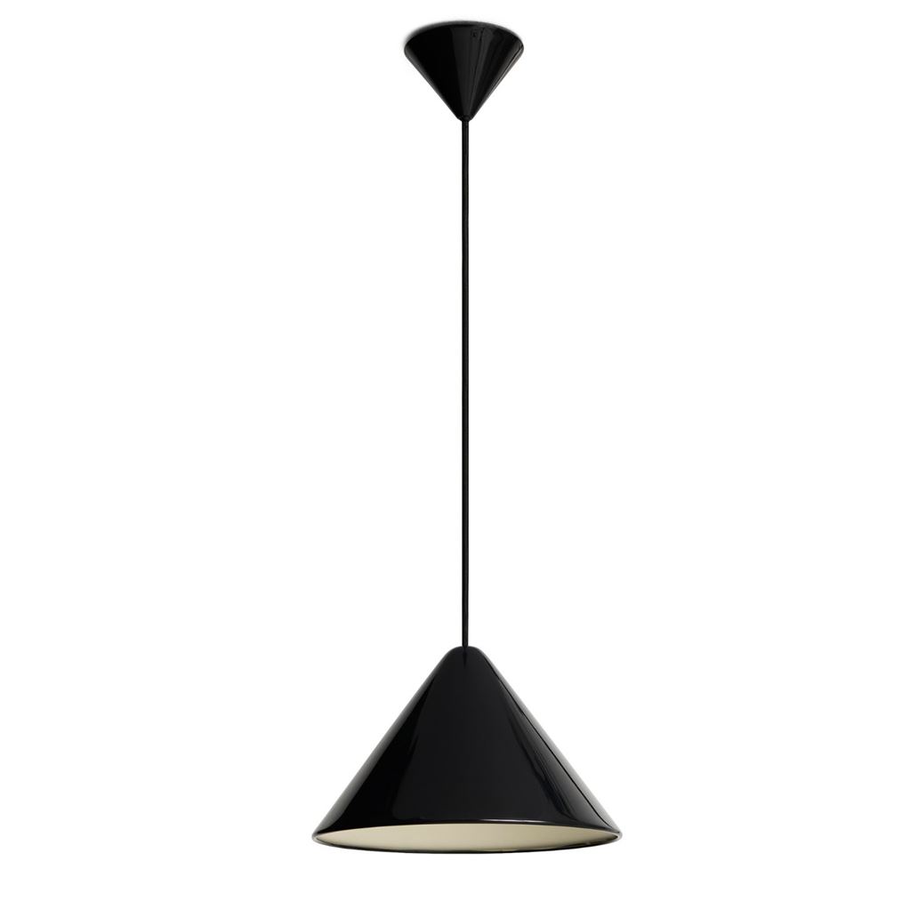 Lampens design tager udgangspunkt i en skråt vinklet, konisk skærm, der svæver let fra loftet. Den enkle og rene form giver et elegant udtryk og skaber en harmonisk visuel balance.