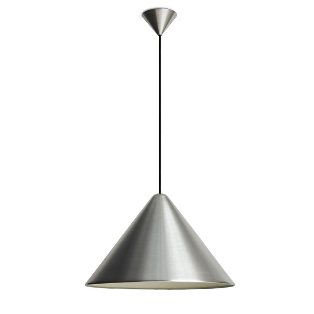Lampens design tager udgangspunkt i en skråt vinklet, konisk skærm, der svæver let fra loftet. Den enkle og rene form giver et elegant udtryk og skaber en harmonisk visuel balance.