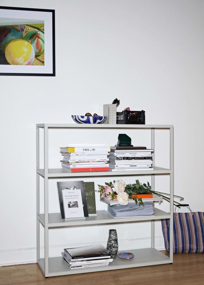 Praktisk opbevaringssystem fra HAYs New Order kollektion. Kollektionen er designet af Stefan Diez og er et fantastisk tilpasseligt reolsystem i aluminium. Det kan sættes sammen og kombineres lige efter ønske, hvilket giver et hav af kombinations- og tilpasningsmuligheder, som kan skræddersyes til lige netop dit personlige behov. Lige meget om det er en bogreol i stuen, et nyt opbevaringsområde på hjemmekontoret, en ny opbevaringsplads i køkkenet eller et hyldesystem i entréen eller soveværelset, kan New Order tilpasses. Med New Order hylde systemet får du et robust system, som er nemt at vedligeholde. HAY New Order Combination 301 består af 4 hylder. Funktionel og praktisk opbevaring med HAY.