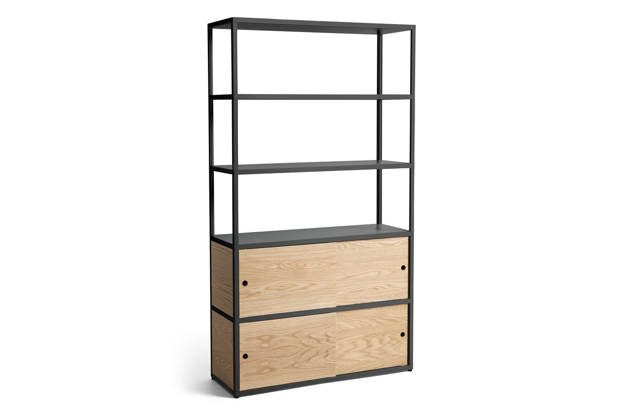 HAY New Order Combination 304 L: 100 cm - Steel/CharcoalUdviklet i samarbejde med HAY er Stefan Diez’ New Order et alsidigt reolsystem, skabt til at matche den