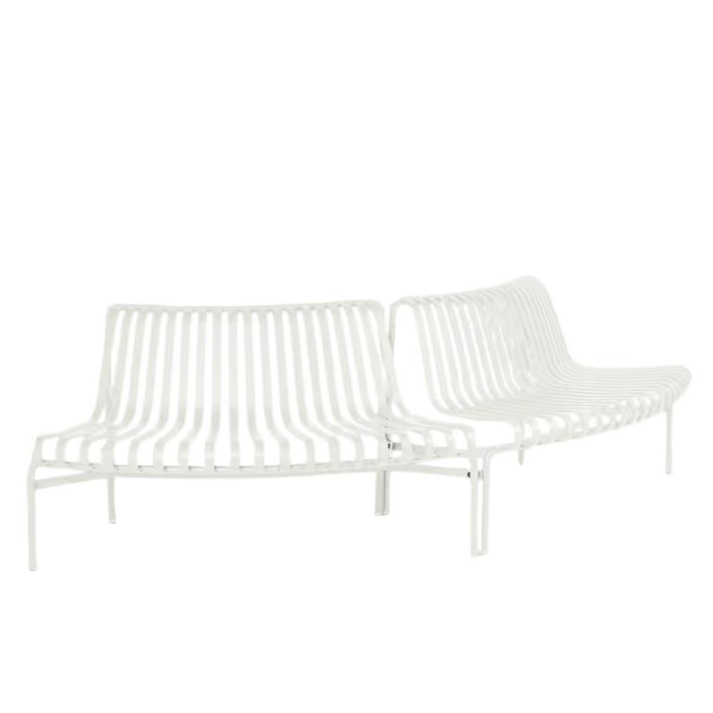 Funktionel og smuk bænk fra Hay, Palissade serien. Bænken kommer i et sæt af to og er en modul bænk, til udendørs brug. Bænker kommer i to forskellige varianter, som buer hver deres vej, en der buer udad og en der buer indad. I dette sæt får du et sæt af to der buer udad. Med disse forskelligt buede moduler kan du derfor ved sammensætning, skabe en slangeformet, lang bænk, eller benytter dem der buer samme vej for, at skabe en rund bænk med enten sæderne indvendig eller udvendig. Bænkene er perfekt til offentlig brug i parker, store haver eller hvor der ellers er brug for mange siddemuligheder. Du kan dog også sagtens bruge bænkende privat, i haver eller på terrassen.