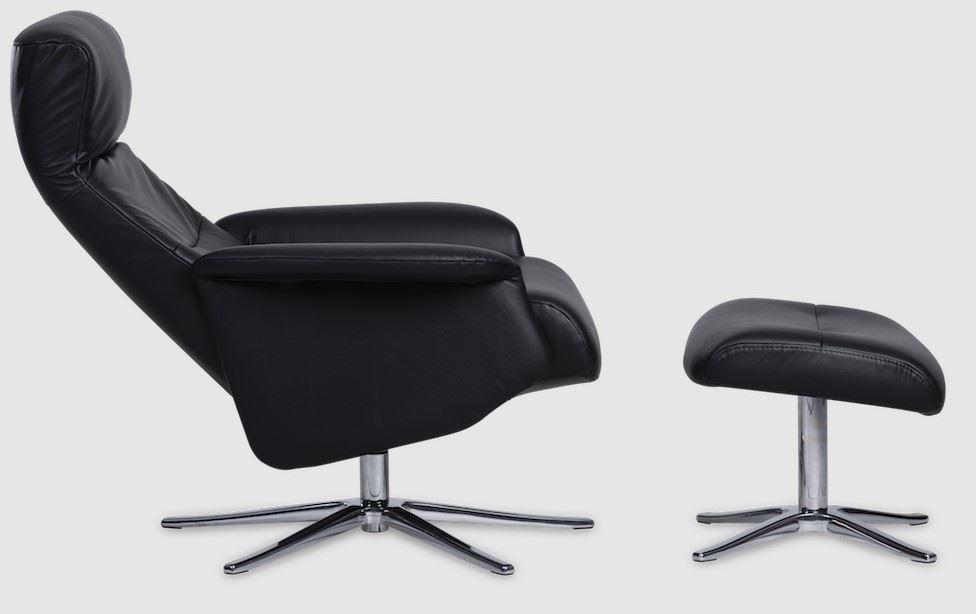 IMG Space 2000 Lænestol inkl. Fodskammel SH: 46 cm - Rosso 1 Black/B1 Slimline/Børstet Stål