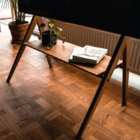 Tilføj både funktionalitet og æstetik til din KAYA TV-stander med denne eksklusive hylde i massivt valnøddetræ. Designet til at integrere perfekt med standerens formsprog og materialer, skaber hylden en harmonisk og stilren løsning til dit underholdningsudstyr.