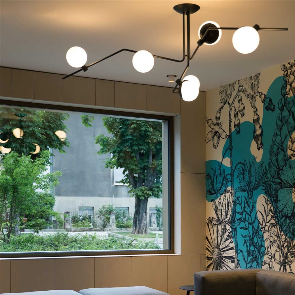 Baluna Chandelier 6 er en moderne designer lysekrone, der passer smukt ind i ethvert hjem og tilføjer stil til indretningen. Med seks runde opalglas på armene spreder den et behageligt og jævnt lys i rummet. LED lyskilde integreret.