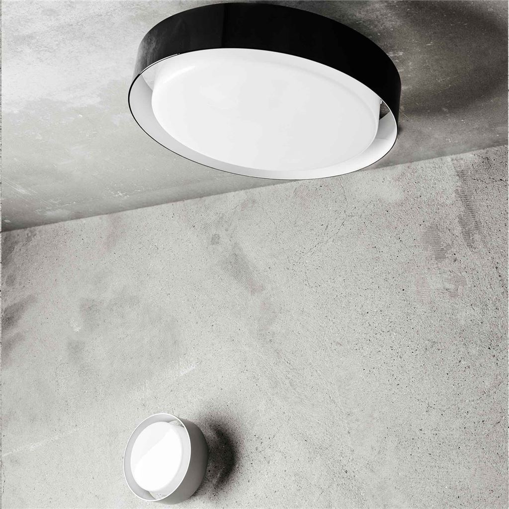 Plaff-On loft- og væglampe er det perfekte valg til at skabe et behageligt lys ved hoveddøren, på den overdækkede terrasse eller på badeværelset. Denne lampe er udstyret med en smuk opal glasskærm og en aluminiumsskærm med hvid inderside, der reflekterer lyset på en blid måde. Placeret lidt væk fra loftet eller væggen, filtrerer lampen lyset indad, hvilket skaber en smuk, glødende lysring og giver samtidig et behageligt diffust lys i rummet. Lyskilde medfølger ikke.