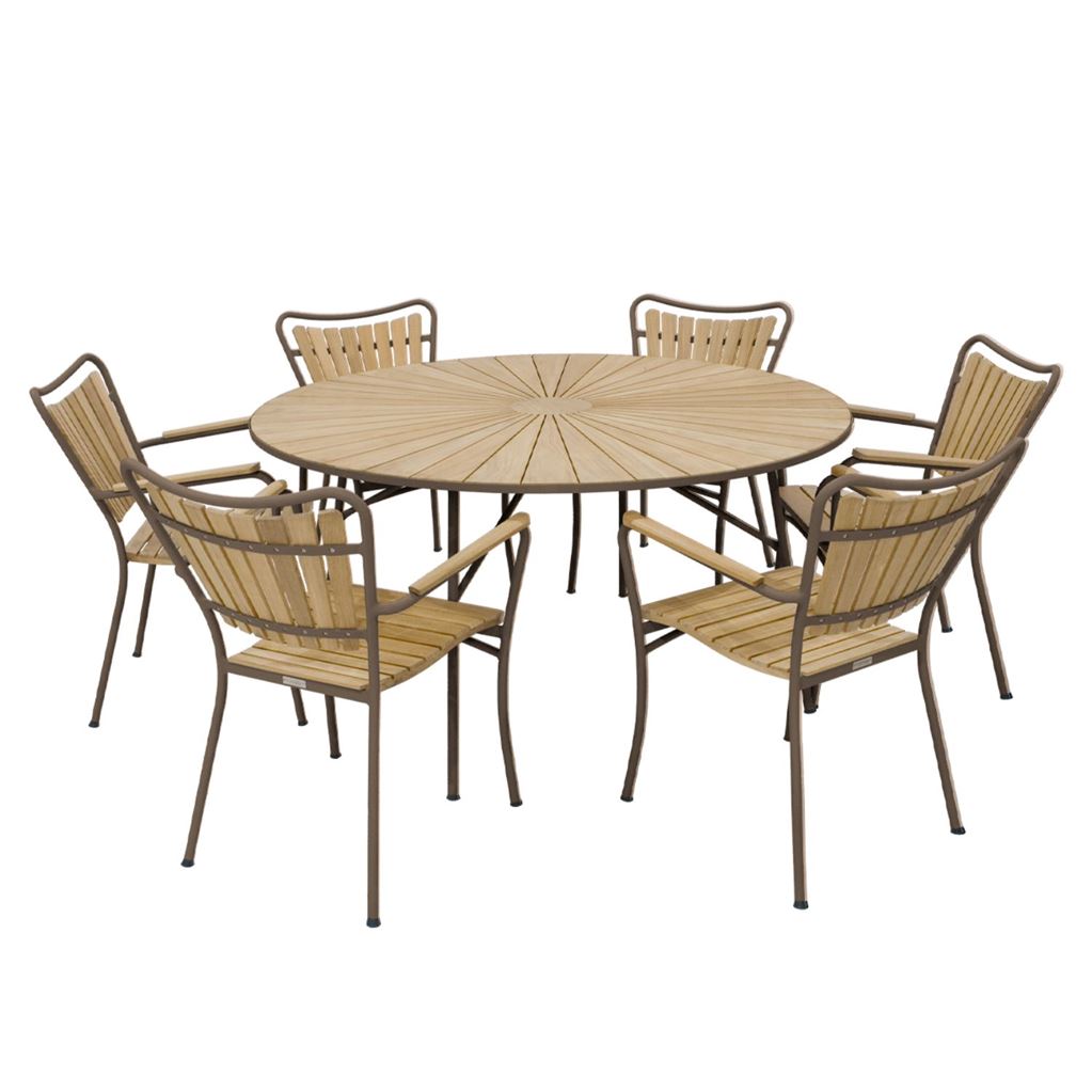 Mandalay Marguerit Havebord Ø: 140 cm inkl. 6 Havestole Havemøblesæt - Teak/Mocca