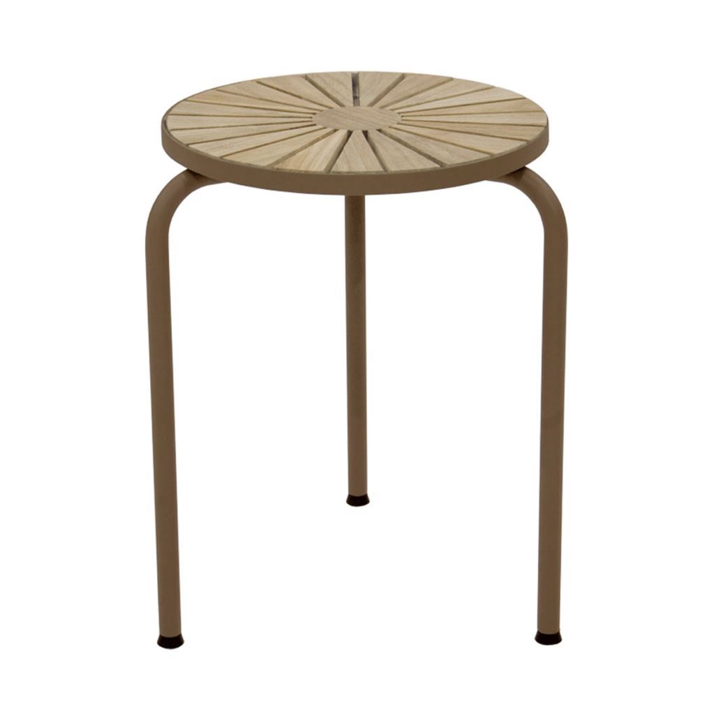 Cafébordet har en diameter på 70 cm og en højde på 68 cm, hvilket stadig giver plads til, at havestolene kan skubbes ind under bordpladen. Bordpladen er fremstillet i teak, mens stellet er i pulverlakeret aluminium.