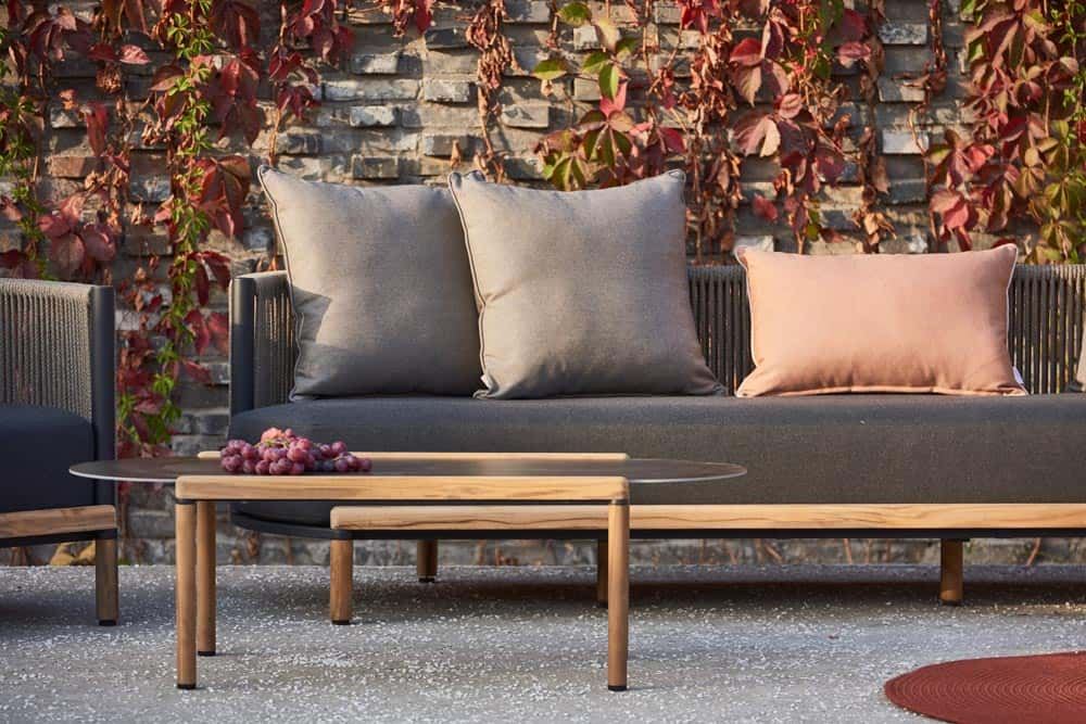 Teak brugt hos Mindo er ikke oliebehandlet og vil derfor få en grå patina med tiden. Ønsker man at beholde den varme farve fra teak, så anbefaler vi at give bordet olie. Hvor tit det skal gøres afhænger af klimaet det befinder sig i.