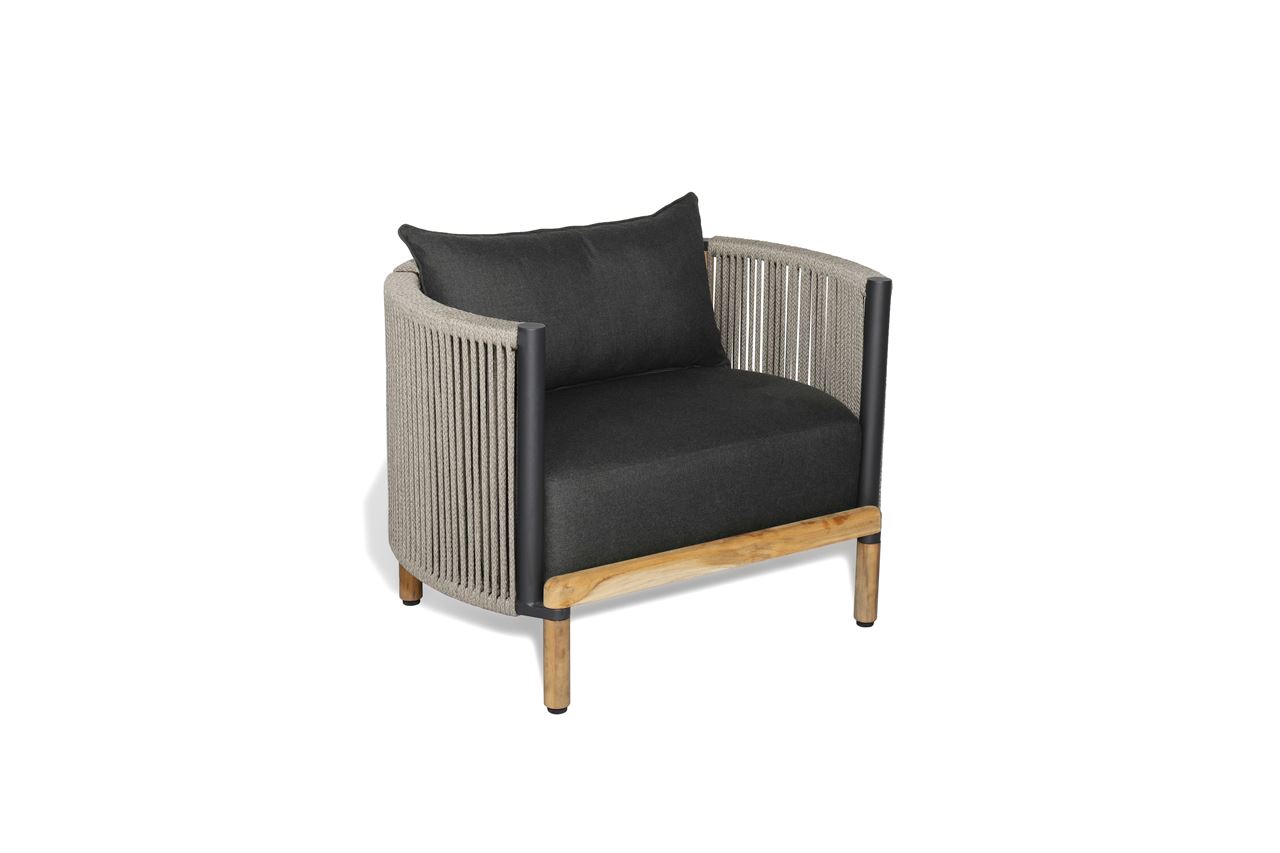Mindo 107 Lounge Chair - Dark GreyMindo 107 loungestolen er både klassisk og moderne. Aluminium, teak og italiensk reb er de elementer der omringer dig, når d Se mere ...