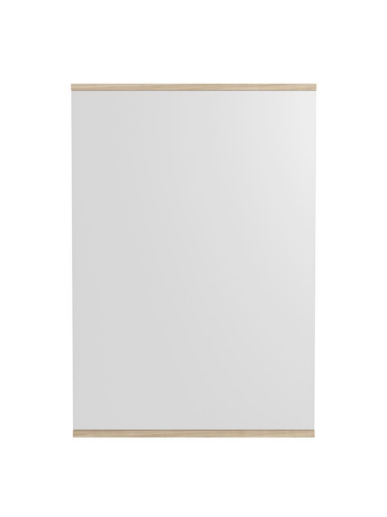 Moebes rektangulære spejle fås i tre forskellige størrelser og træsorter. Spejlene kan både hænges horisontalt og vertikalt, afhængigt af hvilket æstetisk udtryk du foretrækker.