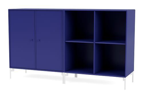 Skøn og alsidig skænk med ben fra Montana. Denne fine skænk har et rummeligt skabsmodul samt et hyldemodul bestående af fire rum, og det er derfor en perfekt o