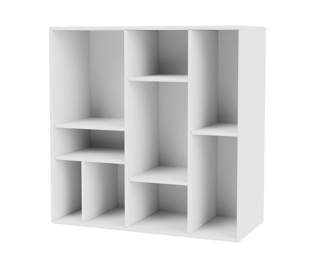 Skøn væghængt reol fra Montana. Denne reol har ni åbne rum i varierende størrelser, hvilket gør den til en yderst alsidig opbevaringsløsning til eksempelvis stuen. Brug den til at opbevare bøger, vaser, planter og andre dekorative ting og sager, som pynter i indretningen. På børneværelset er den fine reol perfekt til at rumme eksempelvis tøjdyr, farveblyanter og børnenes kreationer. Afhængigt af monteringsløsningen på reolen kan tingene enten pynte i en sikker højde, således at reolens indhold er uden for børns rækkevidde, eller reolen kan monteres lavt, således at tingene er let tilgængelige for barnet. Med Montanas modulsystem er mulighederne mange, og der er derfor rig mulighed for at sætte sit personlige præg på sit opbevaringsmøbel gennem farvevalg og utallige kombinationsmuligheder.