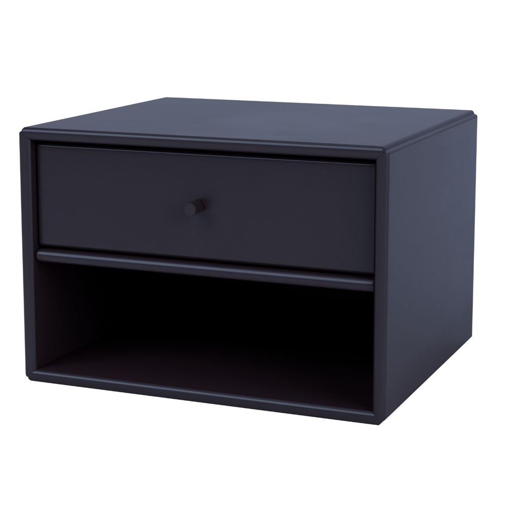 Smukt sengebord med ophængsbeslag fra Montana. Med det fine lille sengebord kan du opbevare dine vigtigste ting til natten i den medfølgende skuffe samt prakti
