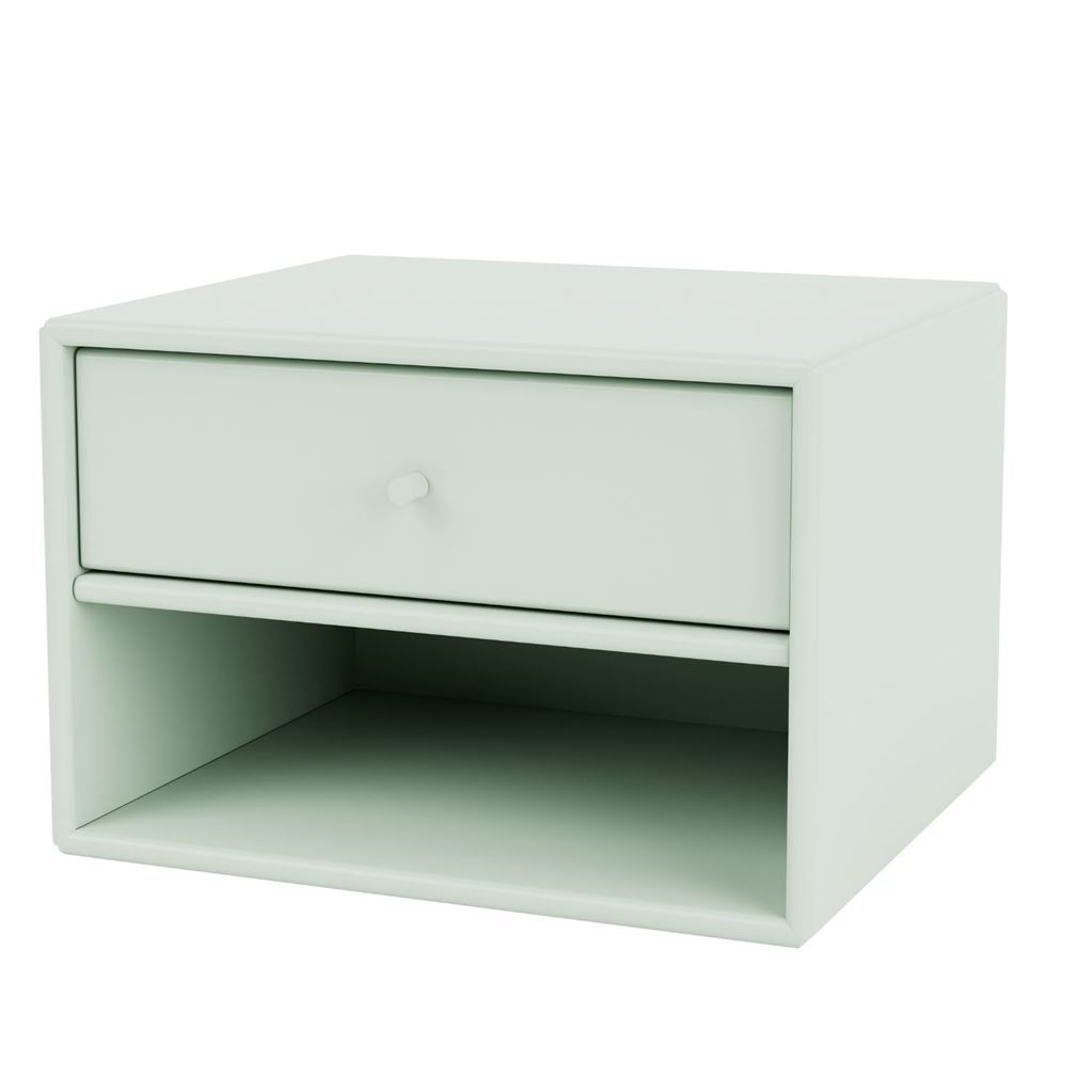 Smukt sengebord med ophængsbeslag fra Montana. Med det fine lille sengebord kan du opbevare dine vigtigste ting til natten i den medfølgende skuffe samt prakti