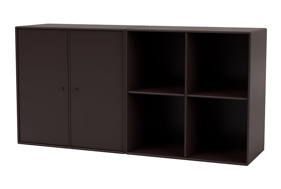 Skøn og alsidig skænk med ben fra Montana. Denne fine skænk har et rummeligt skabsmodul samt et hyldemodul bestående af fire rum, og det er derfor en perfekt opbevaringsløsning, hvis du både ønsker at udstille dine yndlingsting på hylderne såvel som at gemme ting væk i skabene. Brug skænken i stuen, entréen eller hjemmekontoret til at opbevare eksempelvis bøger, magasiner, kontorartikler eller noget helt fjerde. Skænkens skarpe og rene linjer, gør, at det ikke alene er et funktionelt og praktisk opbevaringsmøbel, men også et minimalistisk element, som vil tilføre en smuk detalje i ethvert hjem. Skænken er sammensat af to reolmoduler, og det er derfor muligt at anvende modulerne som individuelle reoler, hvis opbevaringsbehovet forandrer sig, eller hvis man blot ønsker fornyelse i hjemmet.
