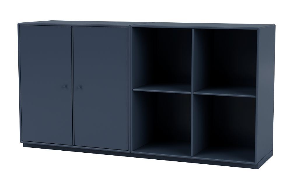 Skøn og alsidig skænk med ben fra Montana. Denne fine skænk har et rummeligt skabsmodul samt et hyldemodul bestående af fire rum, og det er derfor en perfekt opbevaringsløsning, hvis du både ønsker at udstille dine yndlingsting på hylderne såvel som at gemme ting væk i skabene. Brug skænken i stuen, entréen eller hjemmekontoret til at opbevare eksempelvis bøger, magasiner, kontorartikler eller noget helt fjerde. Skænkens skarpe og rene linjer, gør, at det ikke alene er et funktionelt og praktisk opbevaringsmøbel, men også et minimalistisk element, som vil tilføre en smuk detalje i ethvert hjem. Skænken er sammensat af to reolmoduler, og det er derfor muligt at anvende modulerne som individuelle reoler, hvis opbevaringsbehovet forandrer sig, eller hvis man blot ønsker fornyelse i hjemmet.